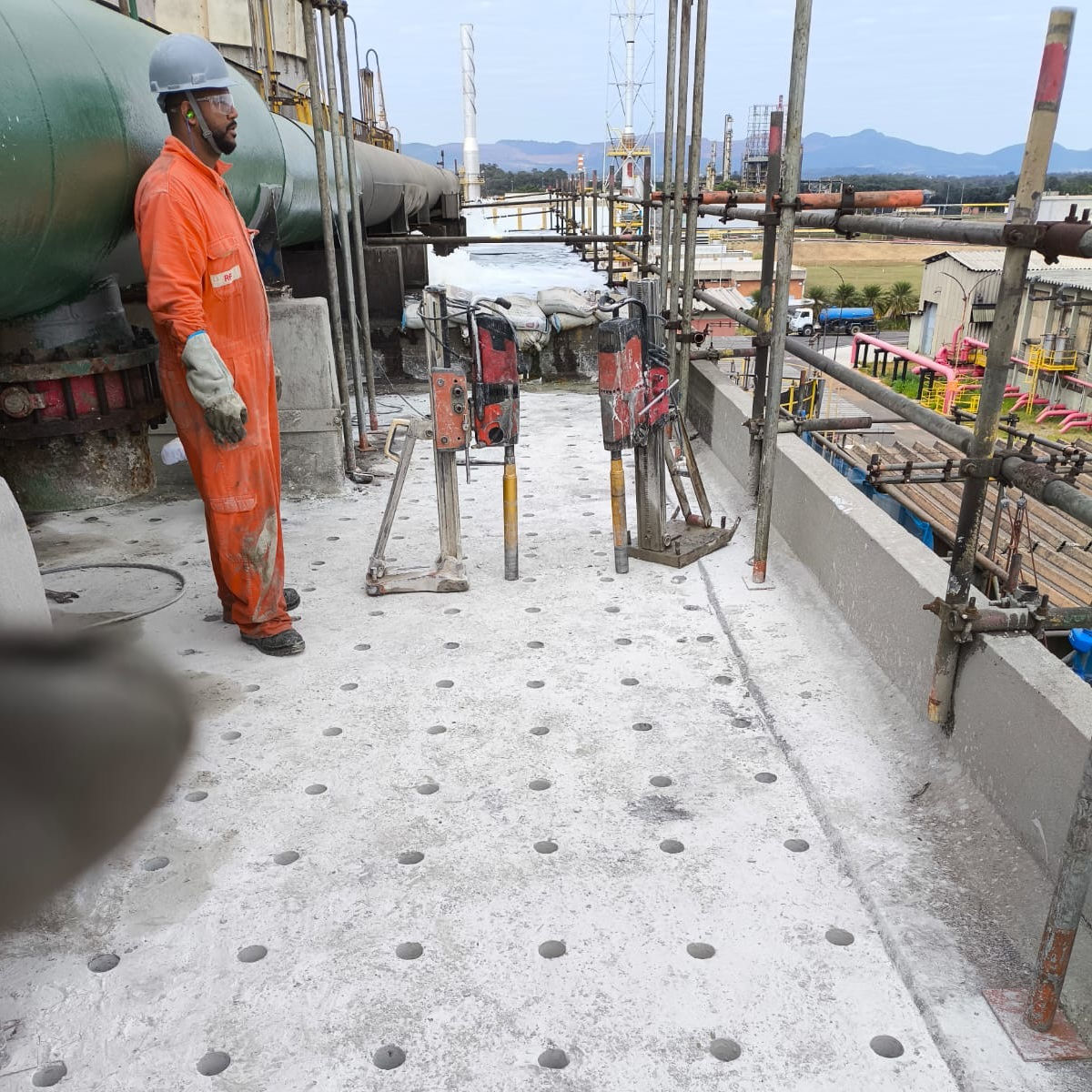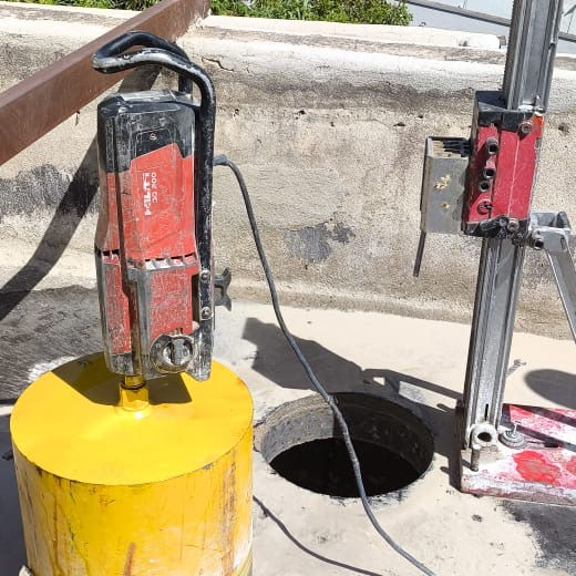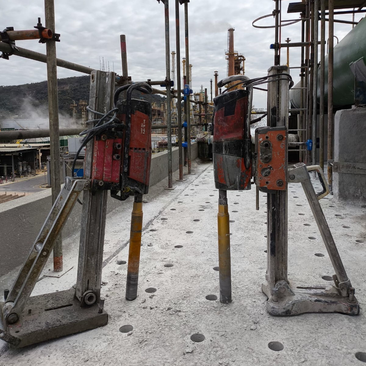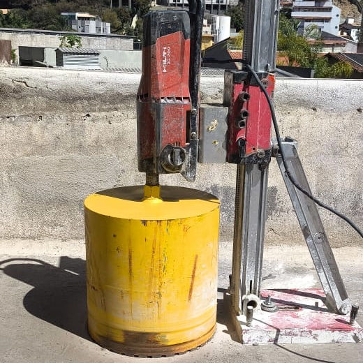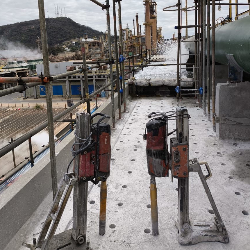 Perfurações precisas em lajes, vigas e paredes para passagem de tubulações, cabos elétricos e instalação de ar-condicionado.